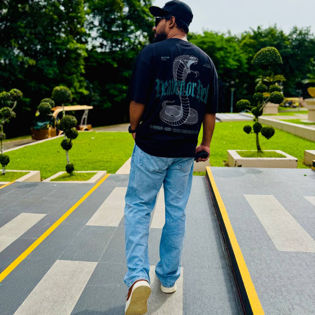 Men’s Black Oversized Drop Shoulder T-Shirt: Black Elegance with Full DFT Printing